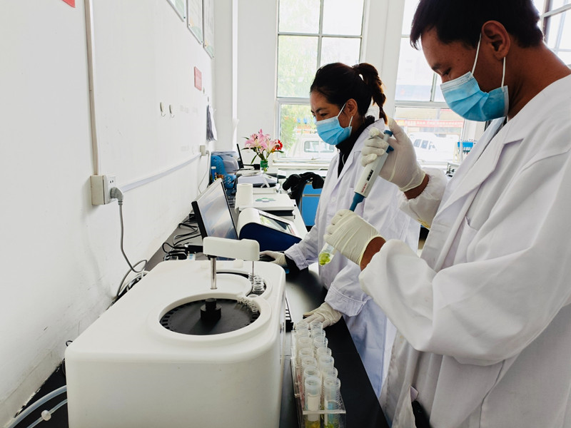 圖為西藏拉薩東嘎農(nóng)副產(chǎn)品批發(fā)市場快檢實驗室工作人員在對該市場內(nèi)農(nóng)副產(chǎn)品進行檢測。記者 央金 攝