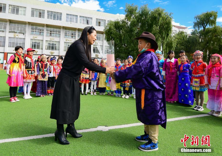 9月10日是第37個(gè)教師節(jié),西藏拉薩市第一小學(xué)舉行了以“譜團(tuán)結(jié)新篇 育桃李芬芳 感教師恩情”為主題的慶祝活動(dòng)。學(xué)生以敬禮、獻(xiàn)花、擁抱等方式,表達(dá)對(duì)老師的感恩之情。中新社記者 貢嘎來(lái)松 攝