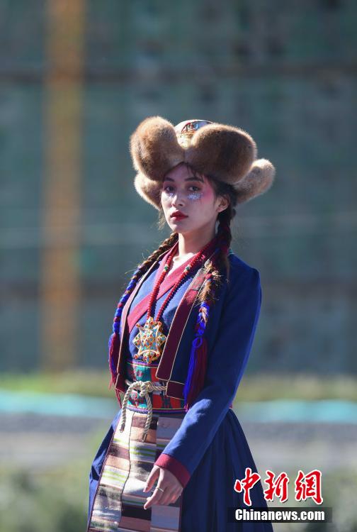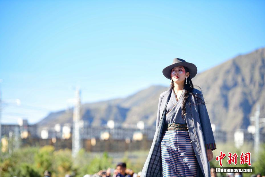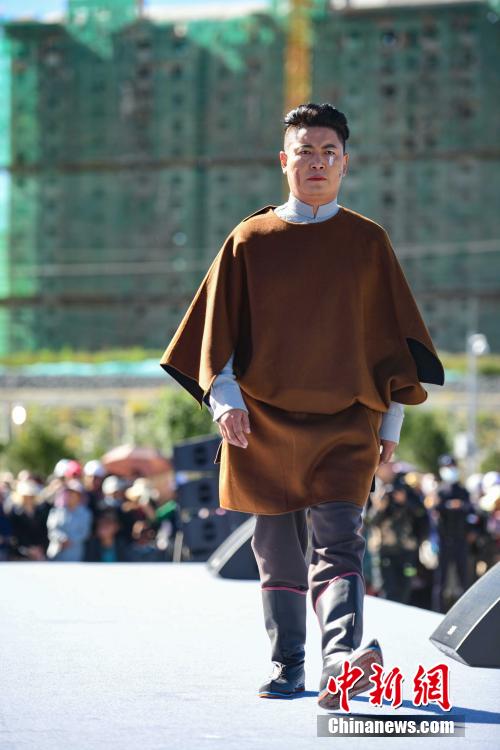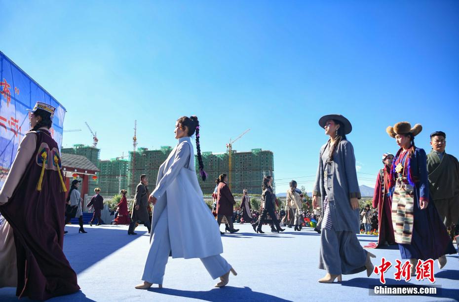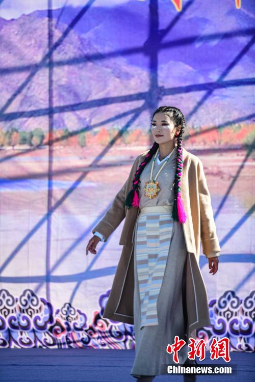 圖為當?shù)夭刈迥L厣碇把鹏敳夭肌爆F(xiàn)代藏裝服飾進行走秀。貢嘎來松 攝