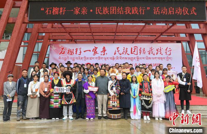 圖為學(xué)生們?cè)诘谖鍖梦鞑厍嗌倌昝褡鍒F(tuán)結(jié)教育實(shí)踐營(yíng)活動(dòng)啟動(dòng)儀式上合影留念。 貢嘎來松 攝