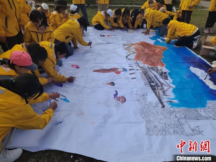 圖為學(xué)生們共繪一幅“中華民族一家親”?!∥鞑厍嗌倌陮?shí)踐教育基地供圖