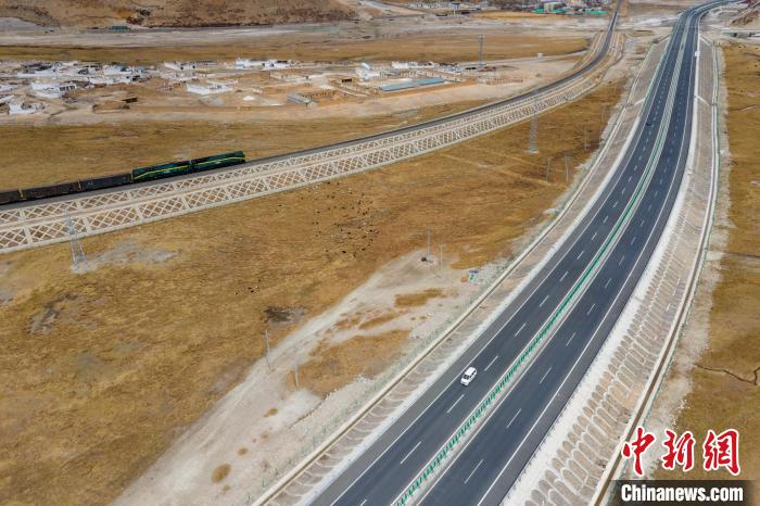 圖為一列進藏火車經(jīng)過G6京藏高速西藏羊八井路段。 江飛波 攝