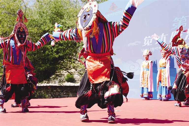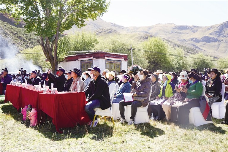 啟動儀式結(jié)束后,還舉辦了第六屆覺木隆派藏戲文化旅游節(jié),邀請堆龍德慶區(qū)10支覺木隆藏戲表演隊(duì)表演特色劇目并為他們授牌。堆龍德慶區(qū)委常委、宣傳部部長楊麗表示,本屆藏戲文化旅游節(jié),廣發(fā)“藏戲達(dá)人召集令”,邀請各派系、各唱腔達(dá)人表演特色劇目選段、共話藏戲,就是希望通過共建文化陣地、共享文化資源、共辦文化活動的形式,凝聚合力,充分彰顯藏戲文化魅力,弘揚(yáng)優(yōu)秀傳統(tǒng)民族文化,保護(hù)和傳承藏戲文化遺產(chǎn),推動藏戲文化深度發(fā)展?!昂軜s幸能參加此次活動,那嘎藏戲團(tuán)于1978年成立,那年我13歲,藏戲團(tuán)剛成立我就加入了,因?yàn)槲沂窒矚g藏戲,希望自己能將這種傳統(tǒng)藝術(shù)傳承下去?!苯衲?6歲的安多說。