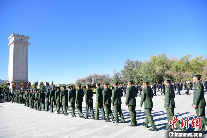 秋日的拉薩碧空如洗,松柏環(huán)繞的拉薩烈士陵園莊嚴(yán)肅穆,藍(lán)天映襯下烈士紀(jì)念碑巍峨聳立。9時(shí)30分,西藏自治區(qū)領(lǐng)導(dǎo)和各族各界群眾代表齊聲高唱《中華人民共和國國歌》。隨后,全場(chǎng)肅立,向烈士默哀。