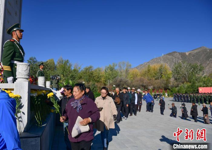 圖為9月30日,在西藏自治區(qū)拉薩市烈士陵園,干部群眾向革命烈士紀(jì)念碑獻(xiàn)花。貢嘎來松 攝