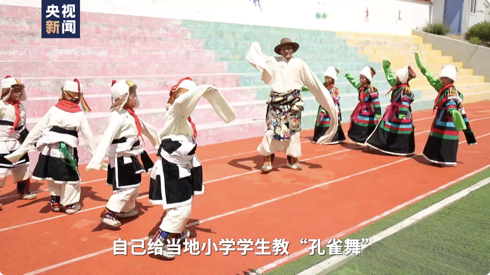 文布南村孔雀舞第四代非遺傳承人 次仁頓珠:我從13歲到今年59歲一直在跳“孔雀舞”、教“孔雀舞”,現(xiàn)在孩子們跳得很好,我覺(jué)得“孔雀舞”得到了很好的傳承,自己給當(dāng)?shù)匦W(xué)學(xué)生教“孔雀舞”同時(shí)經(jīng)常會(huì)到其他地方其他學(xué)校教“孔雀舞”。