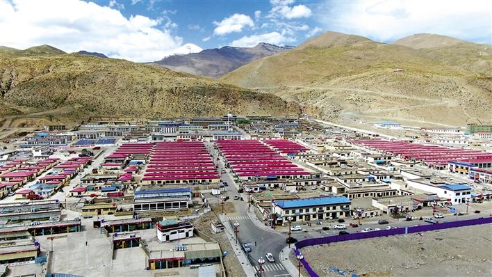 在這座現(xiàn)代化的小區(qū)里,一排排黃色的藏式民居整齊劃一,迎風招展的五星紅旗格外醒目,小區(qū)周邊學校、醫(yī)院、農貿市場等配套設施一應俱全。沐浴著和煦的陽光,孩子們在巷子里奔跑嬉鬧,老人們圍攏在一起拉家常。