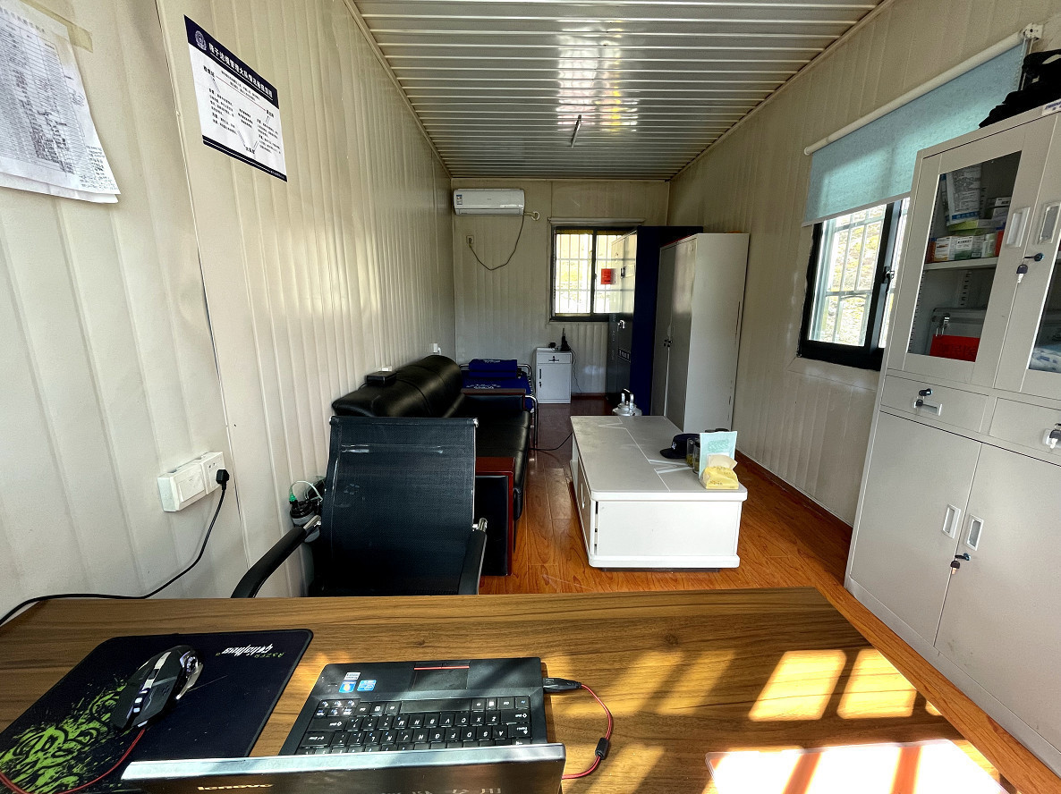 “最開(kāi)始,我們是住在旁邊那個(gè)鐵皮房子里,晚上睡覺(jué)時(shí)還漏風(fēng),取暖基本靠“抖”,睡在被窩里縮成一團(tuán),直到睡熱了之后才能把身子伸直。在這里執(zhí)勤就沒(méi)有脫下過(guò)毛衣,哪怕是在有太陽(yáng)的白天,換衣服要等到回到駐地?fù)Q勤以后。后來(lái)支隊(duì)為我們修建了這個(gè)過(guò)渡性的移動(dòng)方艙,空調(diào)、烤火爐、熱水器、室內(nèi)廁所、冰箱、沙發(fā)等設(shè)備都有了,只要把門關(guān)好了,取暖器和空調(diào)一開(kāi),室內(nèi)就像家里那么暖和。說(shuō)實(shí)話,這條件的跟之前比,就是鳥(niǎo)槍換炮”。周建馳繼續(xù)補(bǔ)充到。
