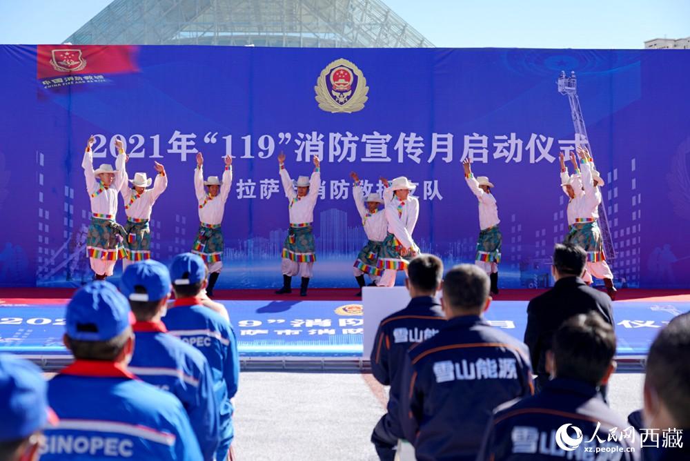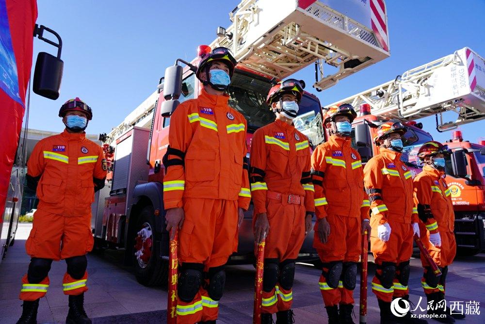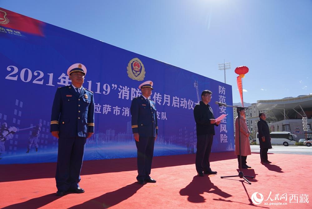 拉薩市2021年“119”消防宣傳月啟動(dòng)儀式現(xiàn)場(chǎng)。人民網(wǎng) 次仁羅布攝