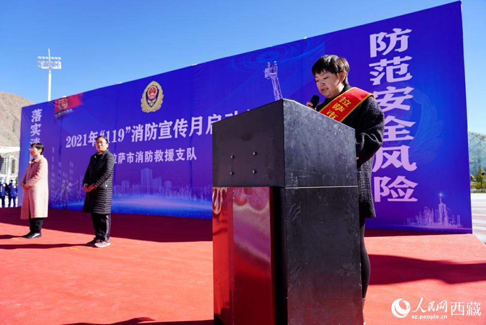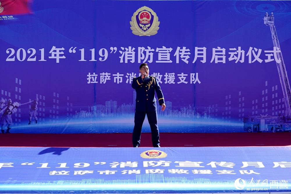 拉薩市2021年“119”消防宣傳月啟動(dòng)儀式現(xiàn)場(chǎng)。人民網(wǎng) 次仁羅布
