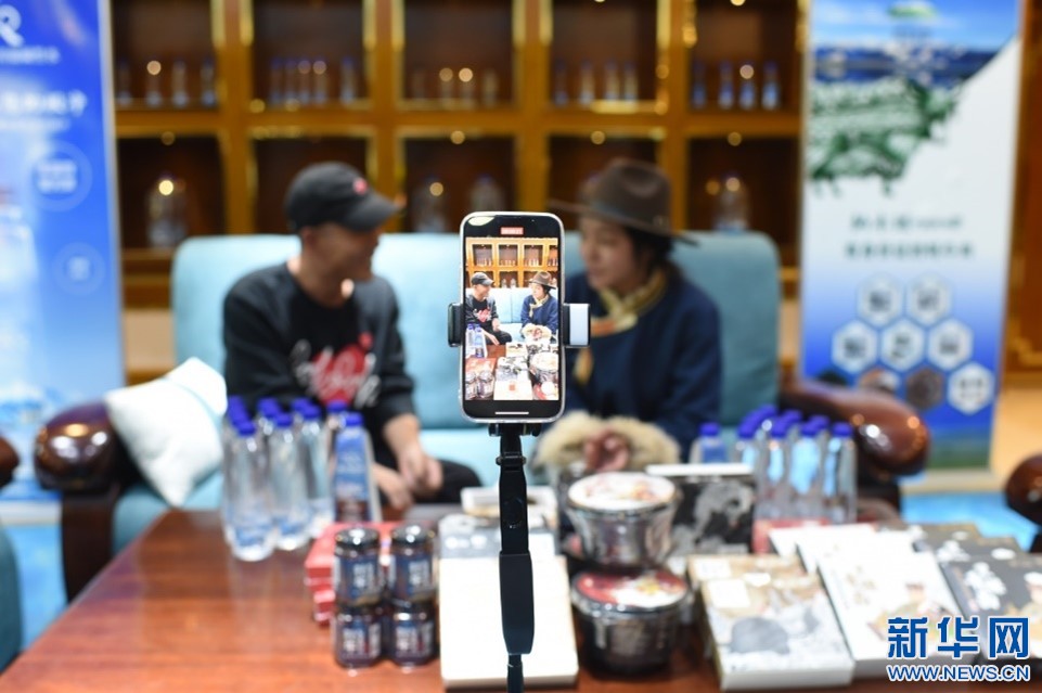 10月30日,“網(wǎng)紅”在直播介紹當(dāng)雄特色產(chǎn)品。新華網(wǎng) 旦增努布 攝