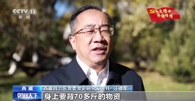 西藏自治區(qū)黨委黨史研究室主任 汪德軍:進藏部隊每一個干部戰(zhàn)士身上要背70多斤的物資,徒步走進西藏。在翻越西藏大山大河過程中,干部戰(zhàn)士克服了重重困難,一路為西藏老百姓看病送藥,讓我們西藏老百姓首先認識了解放軍,認識了共產(chǎn)黨。