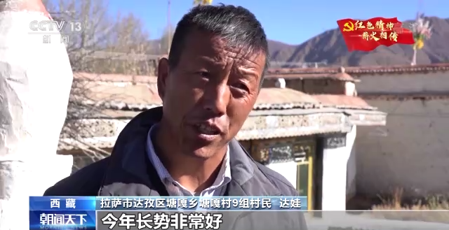 拉薩市達孜區(qū)塘嘎鄉(xiāng)塘嘎村9組村民 達娃:(農(nóng)業(yè)研究所)給了我們1500畝的良種進行試種,今年長勢非常好,一畝地可以出800到900斤,大家非常喜歡。這個良種一方面產(chǎn)量非常高,另一方面抗倒伏。我們收割很方便,秸稈的量也比其他的品種要多。
