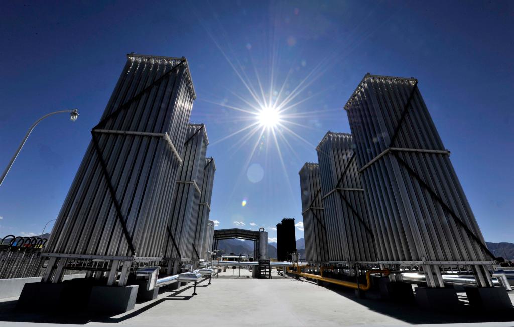 西藏拉薩天然氣站的空溫式汽化器(2011年10月26日攝)。 新華社記者 陶希夷 攝