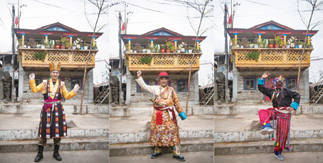 陳塘鎮(zhèn)藏戲演員在展示表演動作(11月25日攝)。普布扎西、格桑邊覺、孫瑞博攝