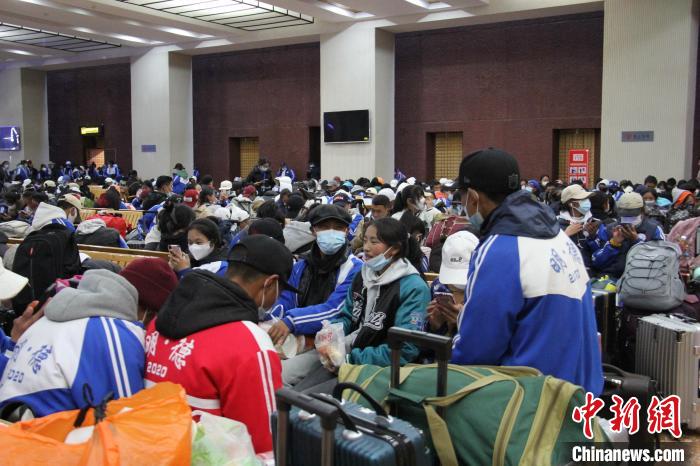 圖為準備返鄉(xiāng)的學生在拉薩火車站候車室。拉薩火車站供圖
