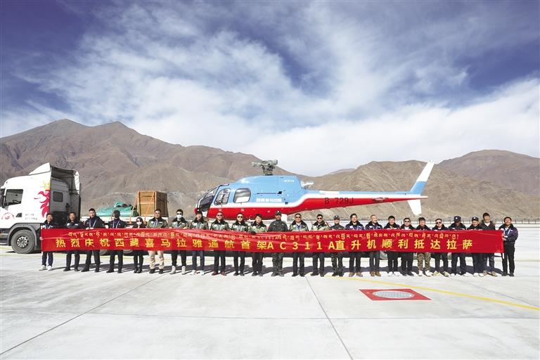 喜迎西藏首架國(guó)產(chǎn)AC311A直升機(jī)。圖由西藏喜馬拉雅通用航空有限公司提供