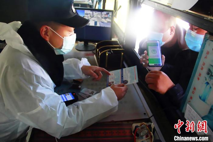 圖為2021年2月7日,那曲市公安局乃吉溝一級(jí)公安檢查站民警開(kāi)展防疫檢查。資料圖 西藏自治區(qū)公安廳供圖