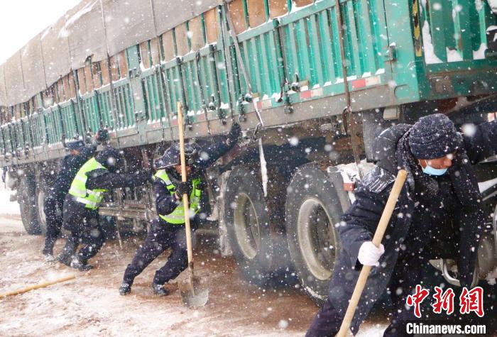 圖為2021年4月,國(guó)道109線(xiàn)安多段大雪致車(chē)輛通行困難,那曲市安多縣公安民警進(jìn)行除雪保通。資料圖 西藏自治區(qū)公安廳供圖