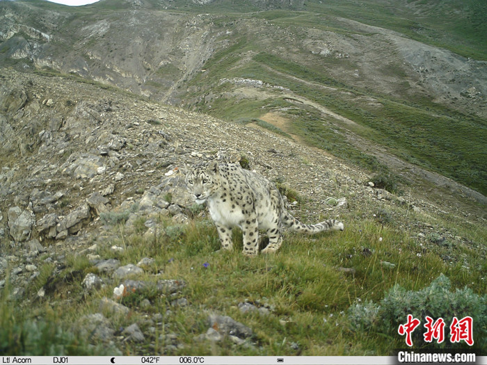 資料圖為2021年8月24日,西藏自治區(qū)那曲市境內(nèi),由紅外相機(jī)拍攝到的雪豹活動影像。 中新社發(fā) 山水自然保護(hù)中心 供圖