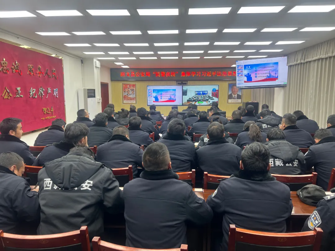 為深入學(xué)習(xí)貫徹習(xí)近平法治思想,不斷牢固樹立法治理念、強(qiáng)化法治思維,大力推進(jìn)新時(shí)代法治公安建設(shè),著力提升公安工作法治化水平和執(zhí)法公信力。2022年1月14日,班戈縣公安局“民警夜?!庇烧笨h長(zhǎng)、公安局黨委副書記、局長(zhǎng)、督察長(zhǎng)李義真同志組織全體民輔警集體學(xué)習(xí)習(xí)近平法治思想,此次學(xué)習(xí)會(huì)以視頻會(huì)議形式開至鄉(xiāng)鎮(zhèn)一級(jí)。