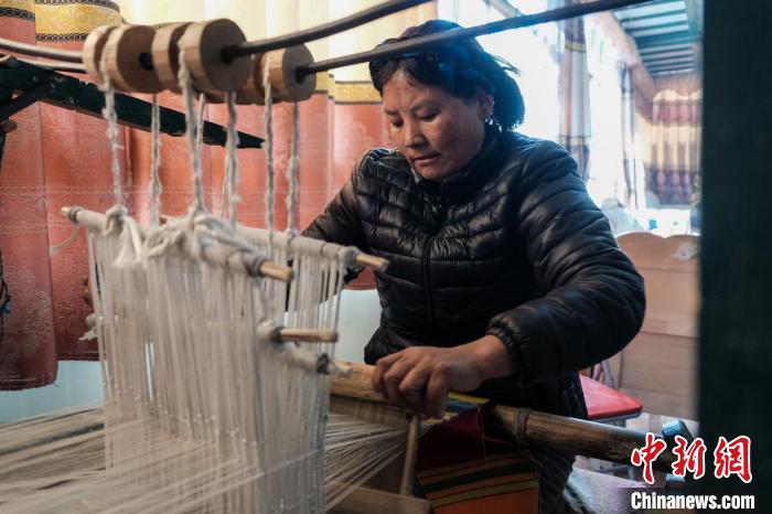 在他們家,記者看到了幾臺傳統(tǒng)藏式織機(jī),玉珍說,這是用于織邦典(藏式毛織圍裙)的工具。2016年開始,玉珍運(yùn)用編織技藝帶領(lǐng)村里的婦女共同成立了一個(gè)小規(guī)模的編織廠,“我們的羊毛線是自己染的,織出來的邦典質(zhì)感更好,也不愁銷路,為家里增收不少?!彼f,編織讓大家實(shí)現(xiàn)了家門口就業(yè),也不耽誤家務(wù),村里人很樂于接受。