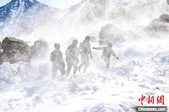 標(biāo)沙拉錯(cuò)哨點(diǎn)官兵艱難行走在風(fēng)雪中?!⒅镜?攝