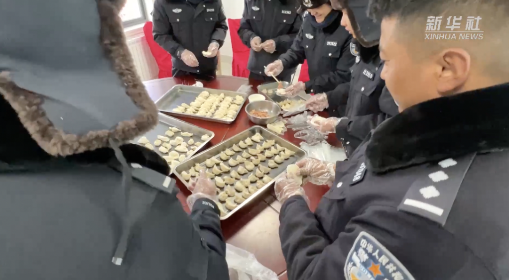 普瑪江塘邊境派出所的民警們?yōu)榱擞有履?,一起在海拔最高的鄉(xiāng)包餃子,感受著節(jié)日里的團(tuán)圓氛圍。