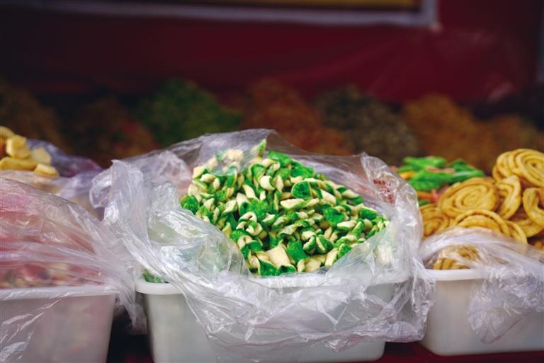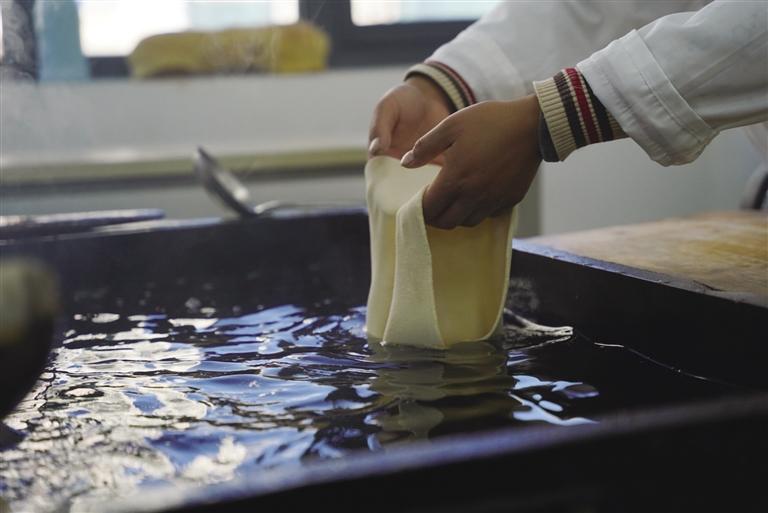 連日來(lái),拉薩市區(qū)內(nèi)的眾多店鋪換裝成“卡賽”店。記者走進(jìn)城中的一家店鋪,店內(nèi)擺滿了精美的“卡賽”。另一旁,工作人員各自分工,有的正在將切割、染色好的面片捏成不同樣式,有的正在將做好形狀的面團(tuán)放到鍋里。
