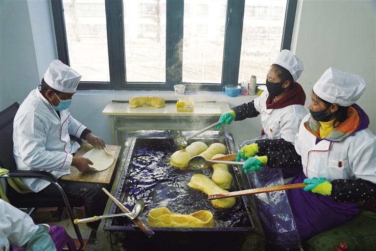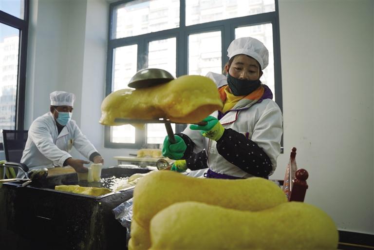 為了保證“德卡”與“卡賽”的品質(zhì),恩惠苑社區(qū)還提前聯(lián)系拉薩市墨竹工卡縣訂購(gòu)面粉與食用油,確保原材料的安全與口感?!盀榱嗽黾愉N量,我們提前對(duì)接了一些社區(qū)居委會(huì)和商戶,并低價(jià)對(duì)內(nèi)銷售,讓我們社區(qū)的搬遷群眾也能夠低價(jià)購(gòu)買到年貨?!贝稳拾椭檎f(shuō)。