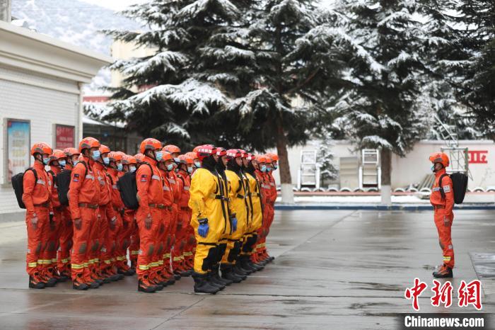 圖為消防員集結(jié)出發(fā)。索朗旺久 攝