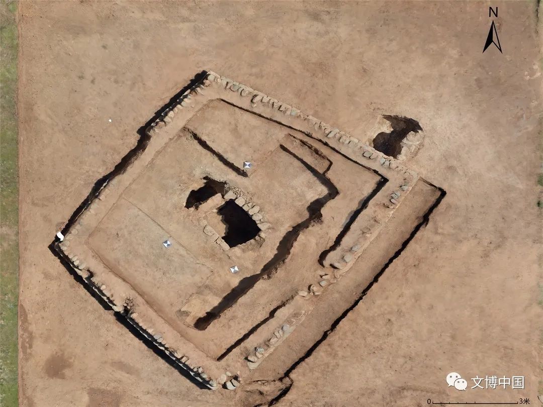 通過探方發(fā)掘法和解剖法,結(jié)合周邊大地層情況,發(fā)現(xiàn)①層為表土層,②、③層及向下為生土層,無人類活動(dòng)跡象。封土墓葬基本均開口于①層下,打破生土層構(gòu)筑。初步推斷營建方式應(yīng)為在當(dāng)時(shí)地面根據(jù)地勢經(jīng)過削平或墊土等平整工作后,在中央位置挖出墓壙營建墓室,再對墓室進(jìn)行填土,而后留出墓道位置,同時(shí)在填土外圍壘起相同高度的石墻基,以保護(hù)內(nèi)部填土,至一定高度后對局部進(jìn)行夯打,再向上封土至一定高度后對石墻范圍內(nèi)整體進(jìn)行封蓋夯實(shí),防止雨水滲透,再進(jìn)行整體封土包住外圍石墻,完成封土墓葬的營建。墓葬內(nèi)部除對局部填土進(jìn)行夯打外,無明顯分層。