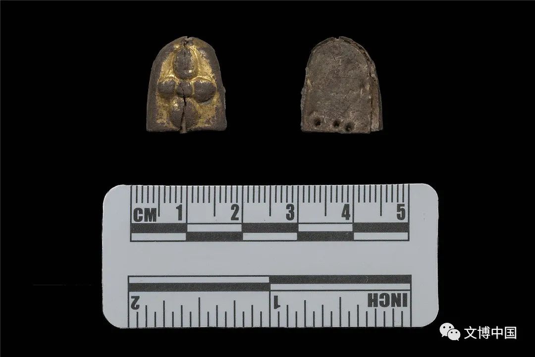 大型墓葬被盜擾情況較為嚴(yán)重,僅結(jié)構(gòu)保存較好,出土遺物普遍較少,小型墓葬未見明顯的盜擾痕跡,但隨葬品極少。出土遺物主要有金銀器,包括雄獅鳥紋金耳勺、植物紋金飾件、銅鍍金覆面、陰刻花紋銀飾件、銀帶扣和金珠、銀珠等;狗頭金;青金石、瑪瑙、珊瑚、松石、珍珠等飾件;陶器(陶片),包括1件鴨嘴流單耳平底罐和若干彩繪赭面人物形象的陶片,屬青藏高原首次發(fā)現(xiàn);銅器,包括銅鏡、銅鈴、銅杯、銅勺、銅錐狀器等;鐵器殘件,可辨器型有鐵箭鏃等;漆皮殘片;貝類制品;紡織物;擦擦;石質(zhì)黑白圍棋子等。