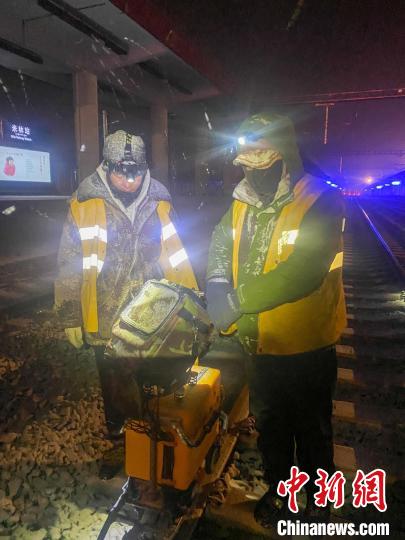 圖為探傷工人夜間使用超聲波探傷儀器檢查鋼軌狀態(tài)?!±痛稳?攝