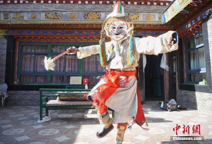 圖為3月21日,協(xié)榮“仲孜”國(guó)家級(jí)非物質(zhì)文化遺產(chǎn)傳承人桑珠。 中新社記者 貢嘎來松 攝
