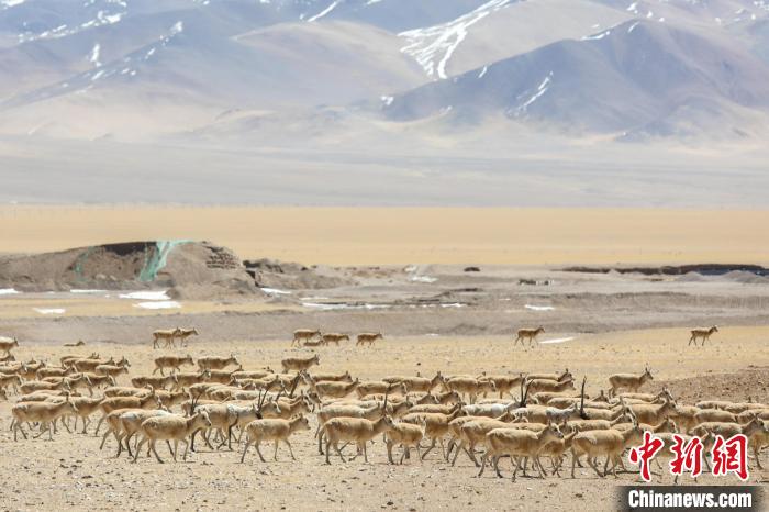 圖為3月27日,西藏改則縣先遣鄉(xiāng)附近的藏羚羊種群。邊巴 攝