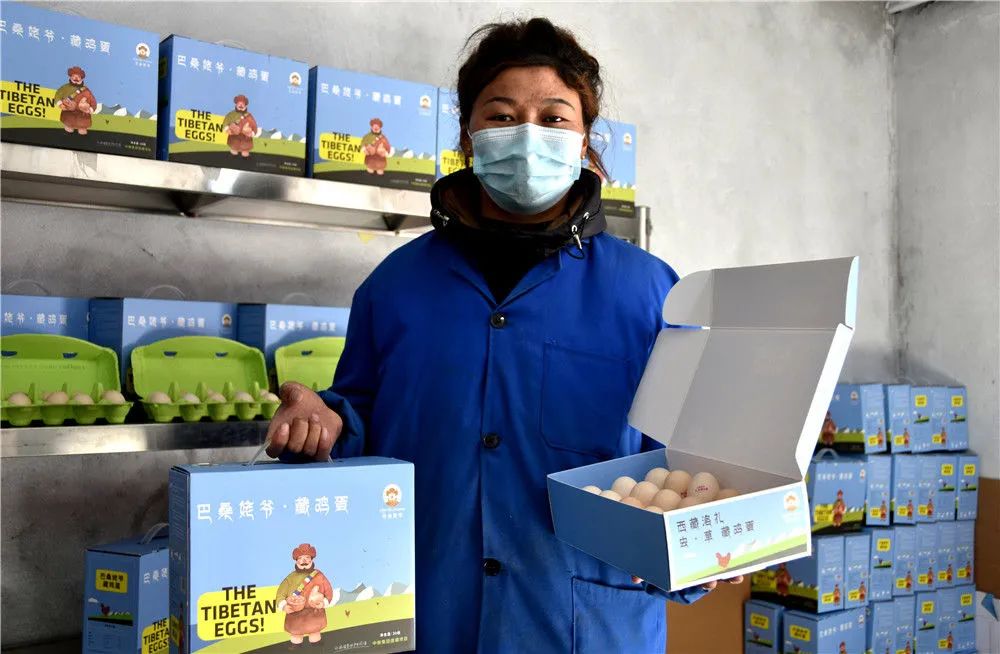 西藏洛扎縣次麥藏雞養(yǎng)殖合作社工作人員在展示特色產(chǎn)品藏雞蛋(1月19日攝)。新華社記者 陳尚才 攝