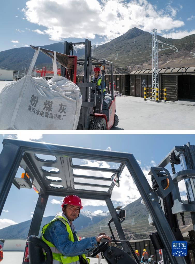 拼版照片:上圖為3月29日,邊巴在林芝站貨場搬運(yùn)貨物;下圖為邊巴在駕駛叉車。朵當(dāng)村的村民邊巴跟人合伙開了一家物流公司,將抵達(dá)火車站的飼料、日用百貨、建筑材料等運(yùn)往林芝各地,他每天都會(huì)通過微信召集周邊的年輕人來貨場干活。邊巴說,他對(duì)未來充滿希望,拉林鐵路貨運(yùn)量不斷增加,自己和村民的收入會(huì)越來越好。新華社記者 洛卓嘉措 攝