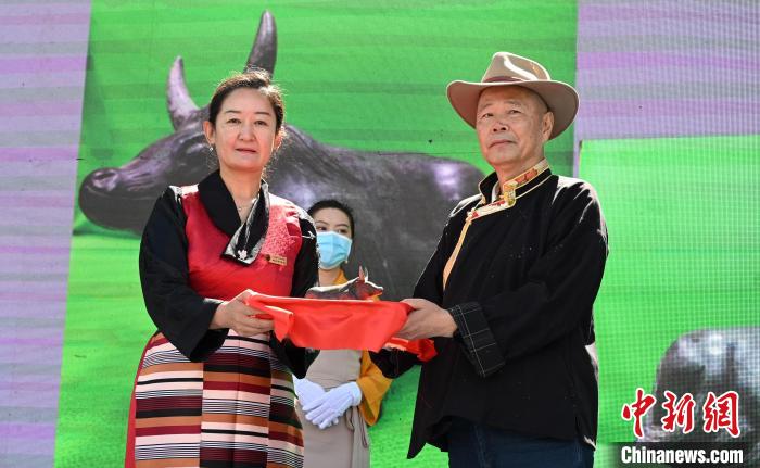 西藏牦牛博物館創(chuàng)館館長、現(xiàn)榮譽(yù)館長吳雨初向西藏牦牛博物館捐贈(zèng)了玉石牦牛雕刻作品。