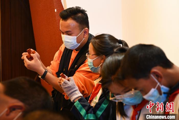 此次展覽的首場講解由拉薩市北京實(shí)驗(yàn)中學(xué)學(xué)生承擔(dān)。活動(dòng)還邀請了在校學(xué)生體驗(yàn)了古建榫卯組裝、北京古城池拼圖等社教活動(dòng)。
