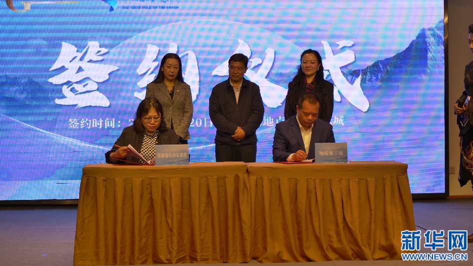 圖為活動(dòng)現(xiàn)場(chǎng)簽約儀式 (5月20日攝)。新華網(wǎng)發(fā) 貢桑央吉(實(shí)習(xí)生)攝