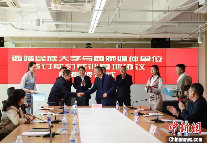 5月27日,西藏民族大學(xué)與西藏日報(bào)社、西藏廣播電視臺(tái)、人民網(wǎng)西藏頻道、中國新聞社西藏分社、中國西藏網(wǎng)西藏記者站等媒體單位簽訂實(shí)習(xí)實(shí)訓(xùn)基地協(xié)議暨揭牌儀式在西藏日報(bào)舉行。