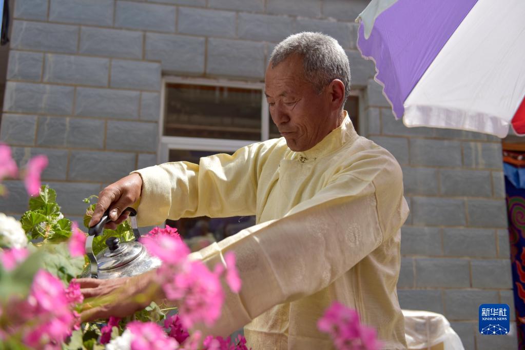 這是在拉薩市達(dá)孜區(qū)幫堆鄉(xiāng)林阿村拍攝的金珠(右)(5月18日攝)。新華社記者 格桑朗杰 攝