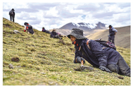 5月25日,牧民在采集蟲草。新華社記者晉美多吉攝