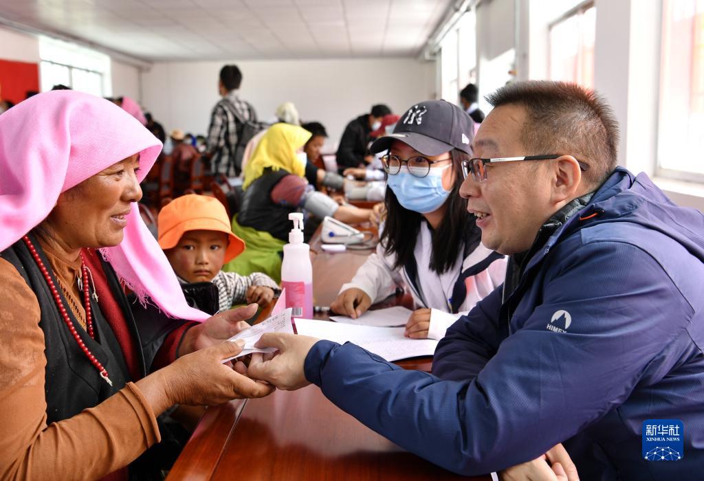 當日,來自拉薩市人民醫(yī)院的北京市第七批“組團式”援藏醫(yī)療專家,來到當雄縣格達鄉(xiāng)為居民義診。