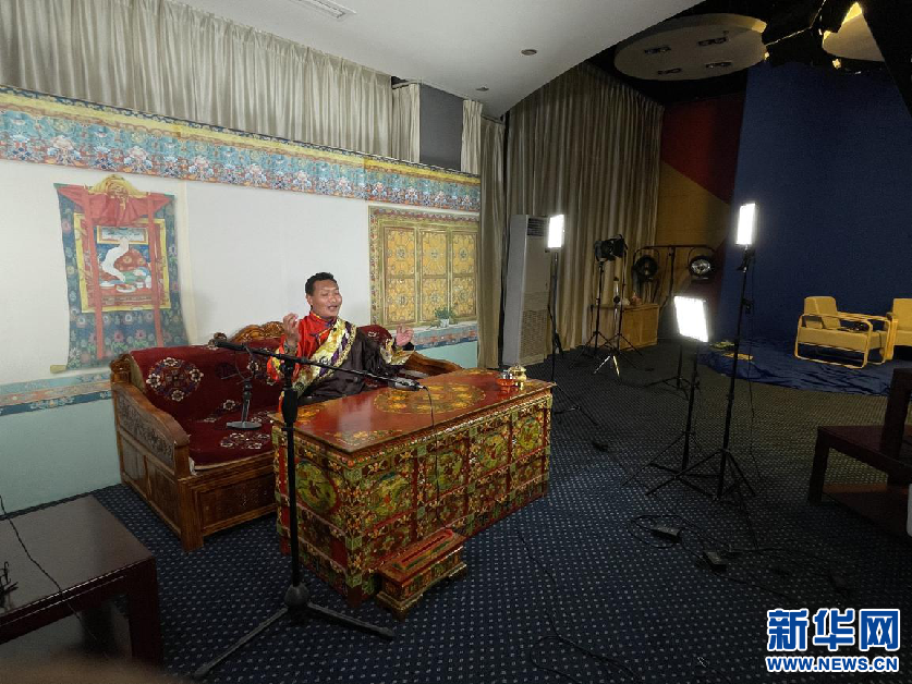 斯塔多吉在錄音棚里錄制《格薩爾王傳》(5月30日攝)。新華網(wǎng)殷小燕 攝