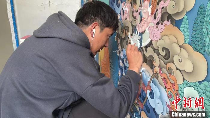 資料圖為裝修工人正在為新房繪制藏式壁畫。次成達(dá)吉 攝