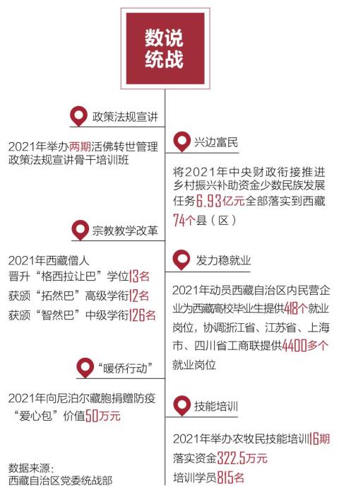 西藏自治區(qū)黨委統(tǒng)戰(zhàn)部介紹,2022年,全區(qū)統(tǒng)戰(zhàn)系統(tǒng)以全力服務(wù)迎接黨的二十大為主線,持續(xù)深化反分裂斗爭,確保國家安全和長治久安。加大活佛轉(zhuǎn)世政策法規(guī)宣傳宣講力度,牢牢掌握反分裂斗爭全局主動性。在鑄牢中華民族共同體意識上見行見效,有效抵御各種極端、分裂思想的滲透,堅決防范民族領(lǐng)域重大風(fēng)險隱患。