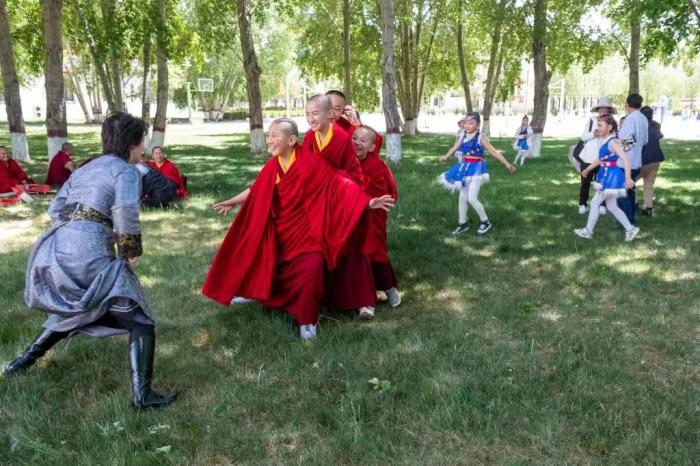 2021 年6 月1 日兒童節(jié),西藏佛學(xué)院與拉薩市第一小學(xué)舉行聯(lián)誼活動(dòng),孩子們一起朗誦詩(shī)歌、玩游戲等。記者 江飛波 攝