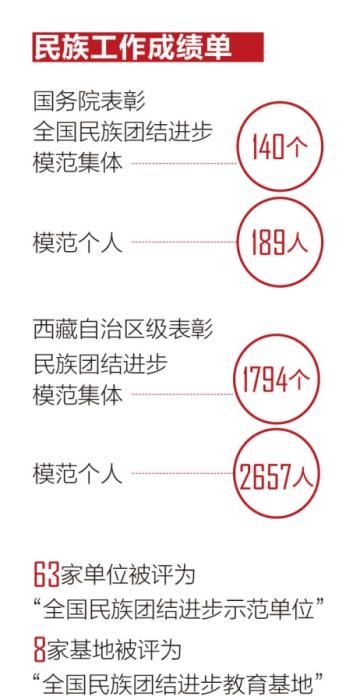 在西藏,民族團(tuán)結(jié)家庭并不是個(gè)例,有不少個(gè)人和集體也為民族團(tuán)結(jié)進(jìn)步事業(yè)作出了突出貢獻(xiàn)。目前,西藏全區(qū)榮獲國(guó)務(wù)院表彰全國(guó)民族團(tuán)結(jié)進(jìn)步模范集體140個(gè)、模范個(gè)人189人;西藏自治區(qū)級(jí)表彰民族團(tuán)結(jié)進(jìn)步模范集體1794個(gè)、模范個(gè)人2657人;63家單位被評(píng)為“全國(guó)民族團(tuán)結(jié)進(jìn)步示范單位”,8家基地被評(píng)為“全國(guó)民族團(tuán)結(jié)進(jìn)步教育基地”。拉薩、日喀則、昌都、阿里、林芝5個(gè)市地成功創(chuàng)成“全國(guó)民族團(tuán)結(jié)進(jìn)步示范地(市)”。
